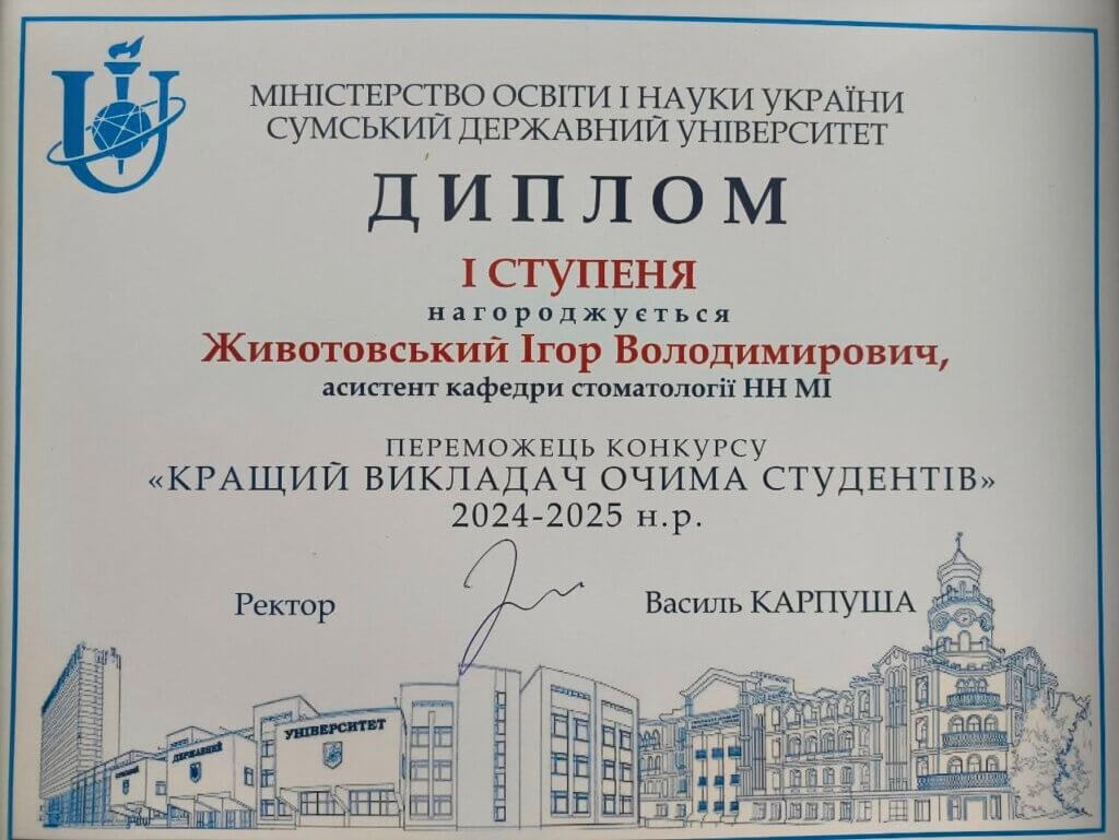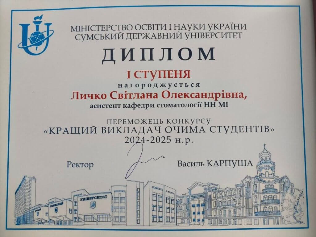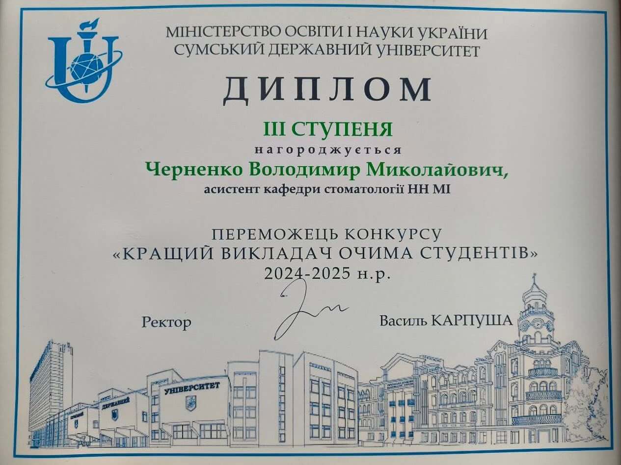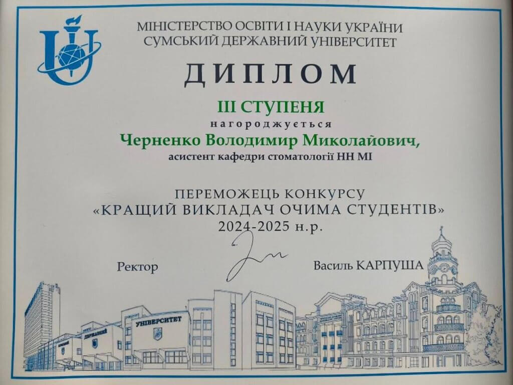 Викладачі кафедри стоматології ННМІ — Личко Світлана Олександрівна, Животовський Ігор Володимирович та Черненко Володимир Миколайович — стали переможцями конкурсу “Кращий викладач очима студентів” 2024-2025 н.р.(2026 р.)